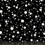 Achroma Drips RS5092-14 Black, Moda Fabrics designed by Ruby Star, 100% cotton, 43/44 inches wide. Assorted white paint splatters on a black background.