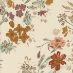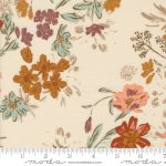 Foraged, Found, & Hand Me Down 45630-11 Eggshell, Moda Fabrics designed by Stephanie Sliwinski of Fancy That Design House & Co. 100% cotton, 43/44 inches wide. Harvest Bloom floral print with assorted flowers in muted shades of rust, gold, mist, peach and plum on an eggshell colored background.